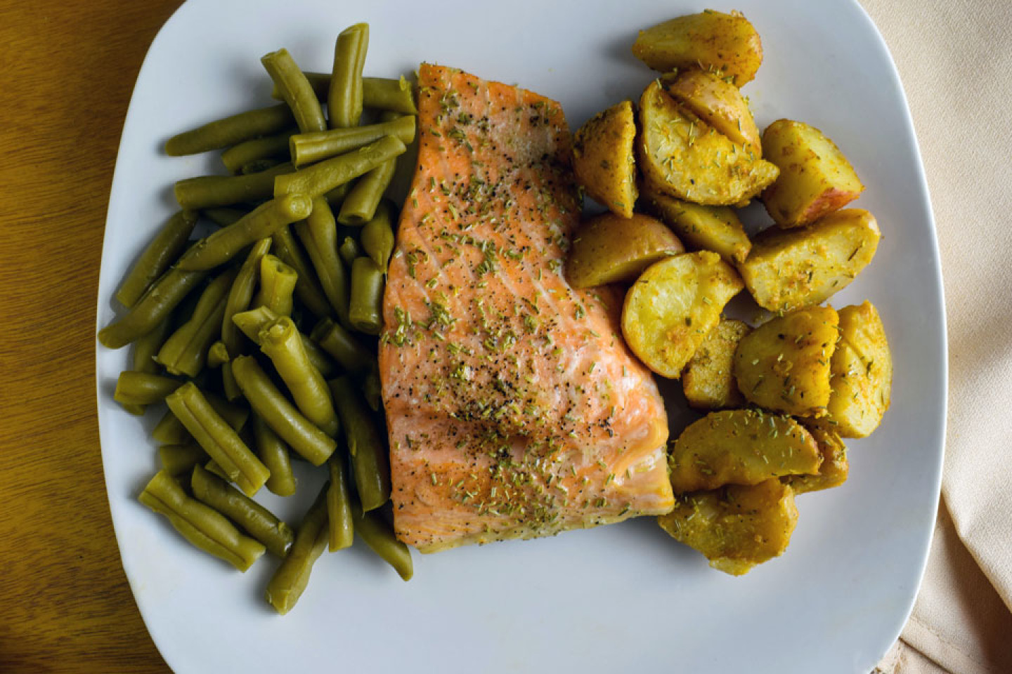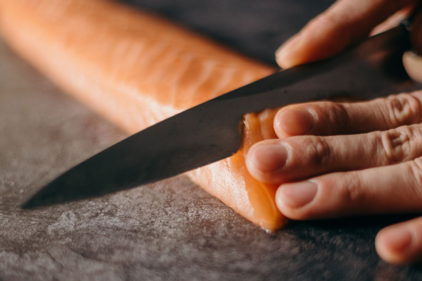 Leikkaa paksusta nahattomasta merilohifileestä n. 200–300 gramman palat ja tee jokaiseen palaan sivuttain viilto keskelle jättäen n. sentin verran kiinni toisesta reunasta. Täytä taskut esim. sinihomejuustolla tai tuorejuusto-cheddar seoksella ja mausta suolalla ja pippurilla pinnat.
